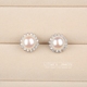 莉莲珠宝 天然淡水馒头珍珠扁圆珍珠 925银锆石王妃款耳钉耳环 女