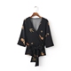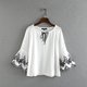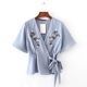 2017夏季新品女装休闲百搭V领刺绣和服短袖上衣蝴蝶结衬衫