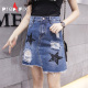 牛仔短裙女夏 2017夏季韩版破洞一步裙不规则包臀裙A字裙半身裙潮