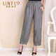 夏季中老年女裤薄款棉麻松紧腰高腰大码女装中年妈妈裤亚麻九分裤