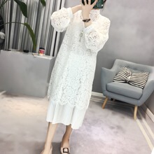 孕妇连衣裙春装2017新款镂空蕾丝长裙两件套套装中长款打底裙秋冬