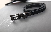 小牛皮黑色百搭腰带细款女士欧美外贸原单女装尾单货剪标出口