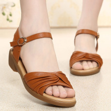 沐奈儿夏季真皮妈妈鞋凉鞋平跟平底中老年女鞋防滑软底大码老人鞋