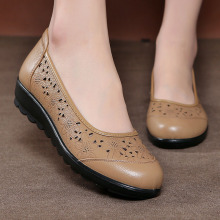 沐奈儿妈妈鞋真皮软底中老年女鞋平底浅口单鞋大码老人鞋休闲皮鞋