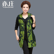 马甲女中年妈妈装秋装外套加大码女装中长款宽松显瘦印花马夹女