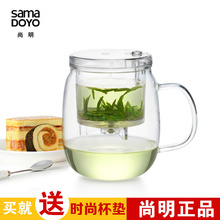 正品尚明飘逸杯玻璃杯带盖过滤男女办公水杯创意耐热透明泡茶杯子
