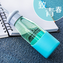 天喜玻璃杯带盖便携水瓶耐热学生水杯创意可爱牛奶杯子有保温杯套