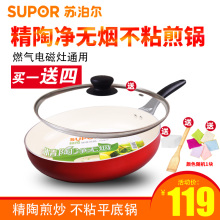 苏泊尔煎锅精陶无油烟煎炒锅陶瓷不粘锅平底锅PJ28T1燃气灶适用28