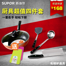 苏泊尔炒锅平底锅深煎锅炒菜锅硅胶铲菜刀汤勺TH1442Q锅套装26cm