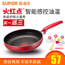 苏泊尔煎锅火红点煎炒锅不粘锅平底锅近无油烟PJ24E1燃气灶适用24