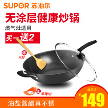 苏泊尔炒锅真不锈2代无涂层平底锅煎锅炒菜锅FC32T12燃气灶适用32