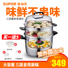苏泊尔蒸锅304不锈钢三层加厚家用3层多层汤锅SZ26E1电磁炉通用26