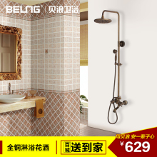 贝浪正品 全铜仿古淋浴花洒套装欧式可升降淋浴柱淋浴器新品特惠