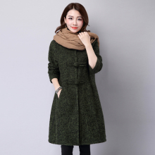 2016秋冬新款女气质中长款百搭复古纽扣显瘦百搭保暖大码毛呢外套