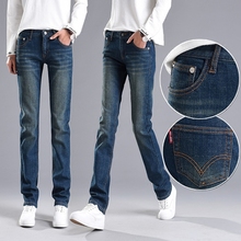 女裤2017春秋款中腰牛仔裤显瘦小直筒牛仔裤长裤子学生韩版