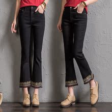 传统刺绣古典绣花微喇八分裤毛边九分裤女牛仔裤春夏季喇叭裤阔腿