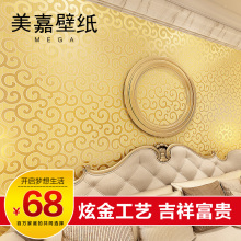 中式古典金箔墙纸祥云图案金黄色壁纸客厅酒吧酒店歌厅KTV天花板