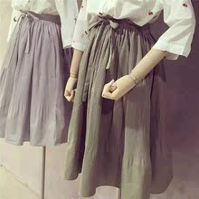 高腰百褶棉布半身裙中长款绑带蝴蝶结荷叶边高腰裙大摆裙韩国夏女
