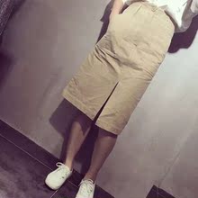 LUCKYYY夏新款韩版简约文艺高腰口袋开叉半身裙中长裙包臀A字裙棉