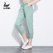 春夏显瘦棉麻九分裤女裤大码宽松9分裤休闲小脚裤女亚麻哈伦裤子