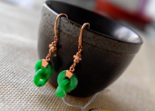 【木古口十】天然 花青翡翠 耳环耳钉平安扣玉18K金 辣色耳坠耳钩