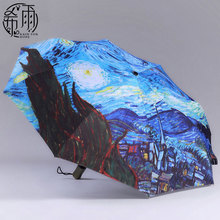 梵高油画伞折叠晴雨伞两用遮阳伞女防晒三折雨伞男创意星空伞自动