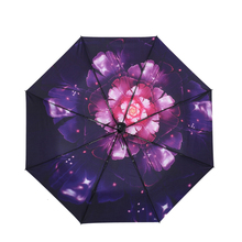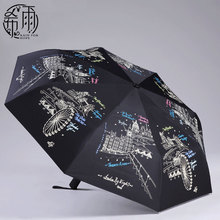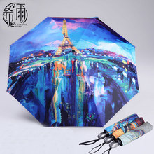 油画雨伞折叠防紫外线遮阳伞创意女雨伞三折伞全自动自动伞强抗风