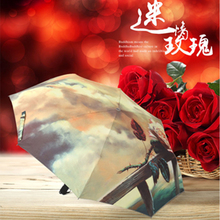 希雨伞 自动雨伞折叠韩国三折伞超轻晴雨两用伞创意加固油画伞