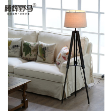 腾辉野马 实木橡木美式落地灯 复古三脚架 北欧客厅书房立式台灯