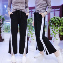 春夏侧边条纹阔腿裤女休闲裤松紧腰直筒裤运动裤显瘦开叉微喇叭裤