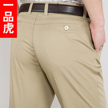 夏季薄款男裤商务中年男士休闲裤弹力直筒裤中老年高腰宽松长裤子