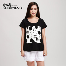 水淼大码女装2016新款夏装时尚个性韩版显瘦黑色T恤潮S2046B6377