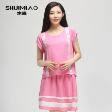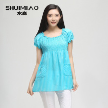 水淼女装2015年夏装新款大码女装宽松条纹中长款短袖t恤S15XK4753