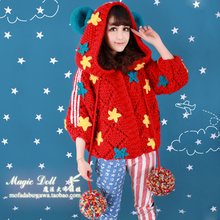 魔法大布娃娃韩版甜美时尚星星连帽运动休闲可爱熊耳朵小外套毛衣