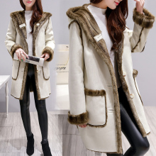 欧洲站2016冬季新款麂皮绒加厚大衣中长款皮草连帽大码棉衣外套女