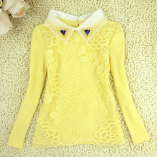 女童白色打底衫加绒儿童保暖衣加厚长袖上衣翻领韩版潮中大童冬季