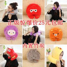大白龙猫带帽子u型枕头卡通护颈枕竹炭睡汽车用品载午休旅行枕