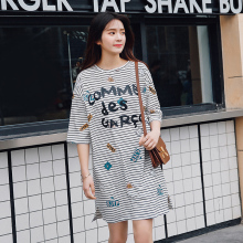 孕妇装夏装条纹连衣裙2017新款中长款上衣潮妈个性春季小清新短袖