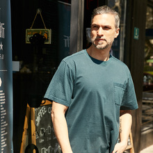 纯棉中老年人男短袖T恤 圆领宽松大码夏季中年爸爸装爷爷口袋T桖