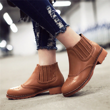2017春季英伦风切尔西靴雕花布洛克复古短靴粗跟加绒保暖大码女靴