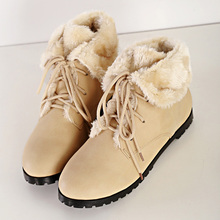 2017春季新款加绒保暖短靴女平底系带翻毛靴雪地靴大码女靴40-43