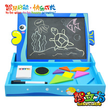 智立方儿童益智玩具快乐海洋双面画板 木制儿童画板 写字板七巧板