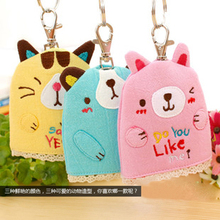 韩版卡通布艺抽拉式钥匙包可爱卡通女式多功能拉链零钱包 钥匙扣
