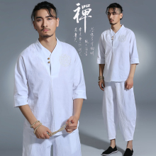 原创中国风男装中式传统文化亚麻套装唐装男青年禅修服居士服汉服