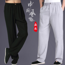 中国风唐装男裤中式亚麻裤男士薄裤太极裤晨练裤表演裤中国风麻裤