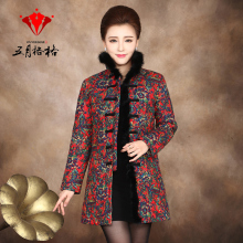 棉衣女中长款冬装加厚中式唐装兔毛领外套复古盘扣上衣