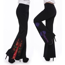 中年唐装裤子春秋款中式服装绣花民族风女裤妈妈装刺绣长裤阔腿裤