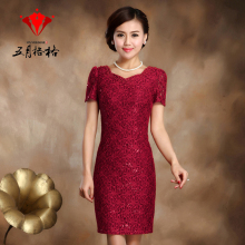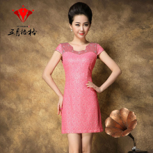 夏新款女装改良修身立领蕾丝大码妈妈装短款旗袍短袖连衣裙女