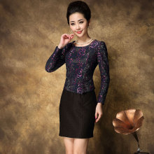 春秋日常时尚改良修身显瘦蕾丝圆领长袖旗袍连衣裙