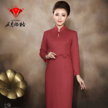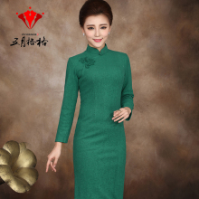 秋冬复古旗袍连衣裙改良长袖羊毛呢中裙女修身中长款外套